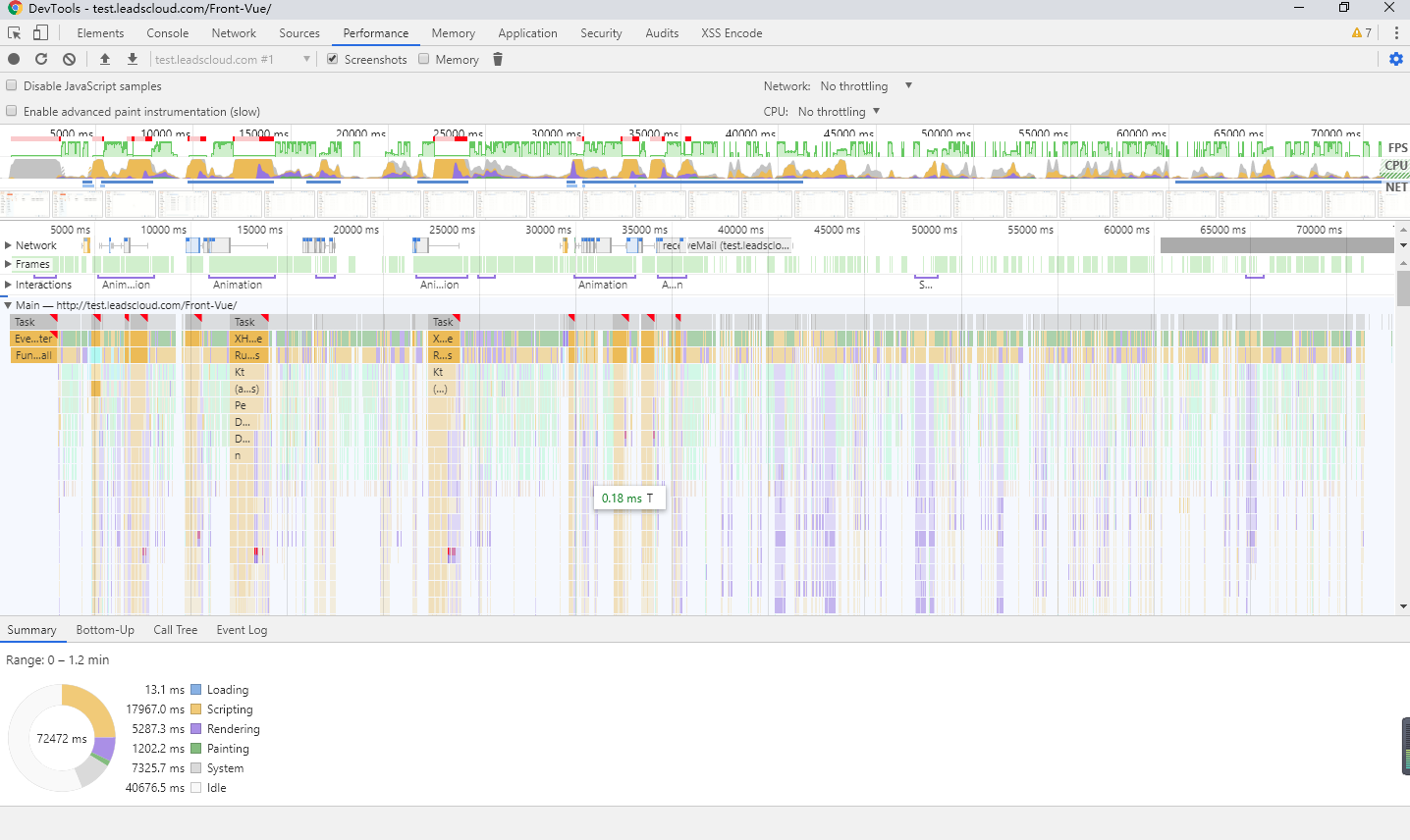 点击录制按钮,开始录制,在对应页面进行有关操作,然后点击停止,停止录制、处理数据并生成性能报告。